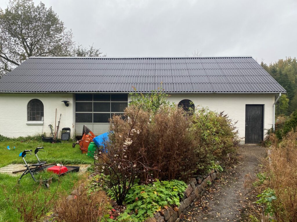 Udenfor er der en sidebygning med nylagt tag. Sidebygning er ikke besigtiget, da der var store hunde i rummet. Der er et stort orangeri i haven.