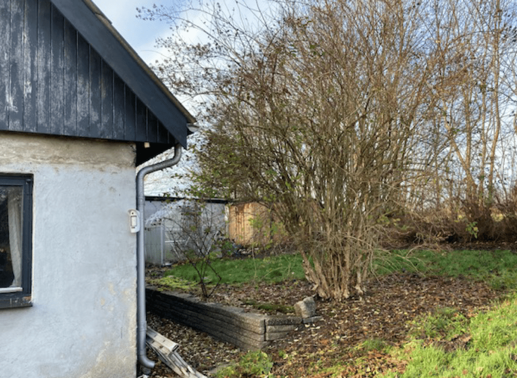 I forlængelse af huset – både ved fyrrummet og ved loftet – er der en lade, hvor der er cementgulv. Laden benyttes PT som værksted. Laden er udstyret med en lille port.