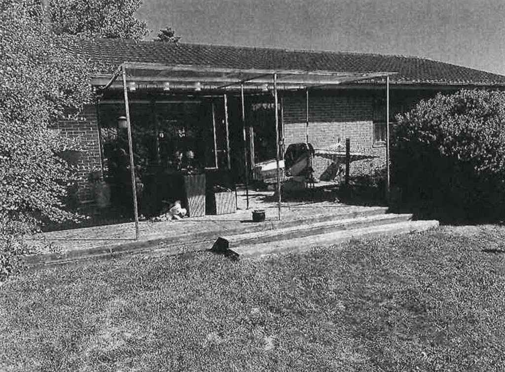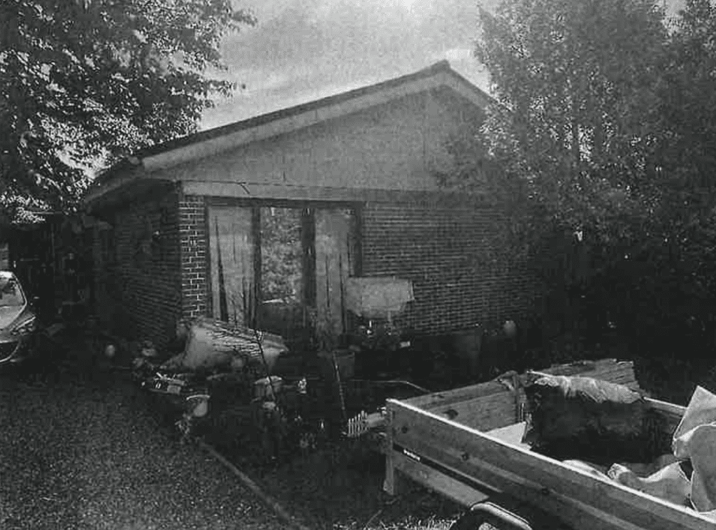 Ejendommen er ligeledes med stenbelagt indkørsel, der fører op til carporten. Fra carporten er der adgang til et redskabsrum, hvorfra der ligeledes er adgang til baghaven. Redskabsrummet er i det første rum med fliser, mens der i det andet rum er stengulv. I redskabsrummet er der registreret en vaskemaskine af mrk. Whirlpool.