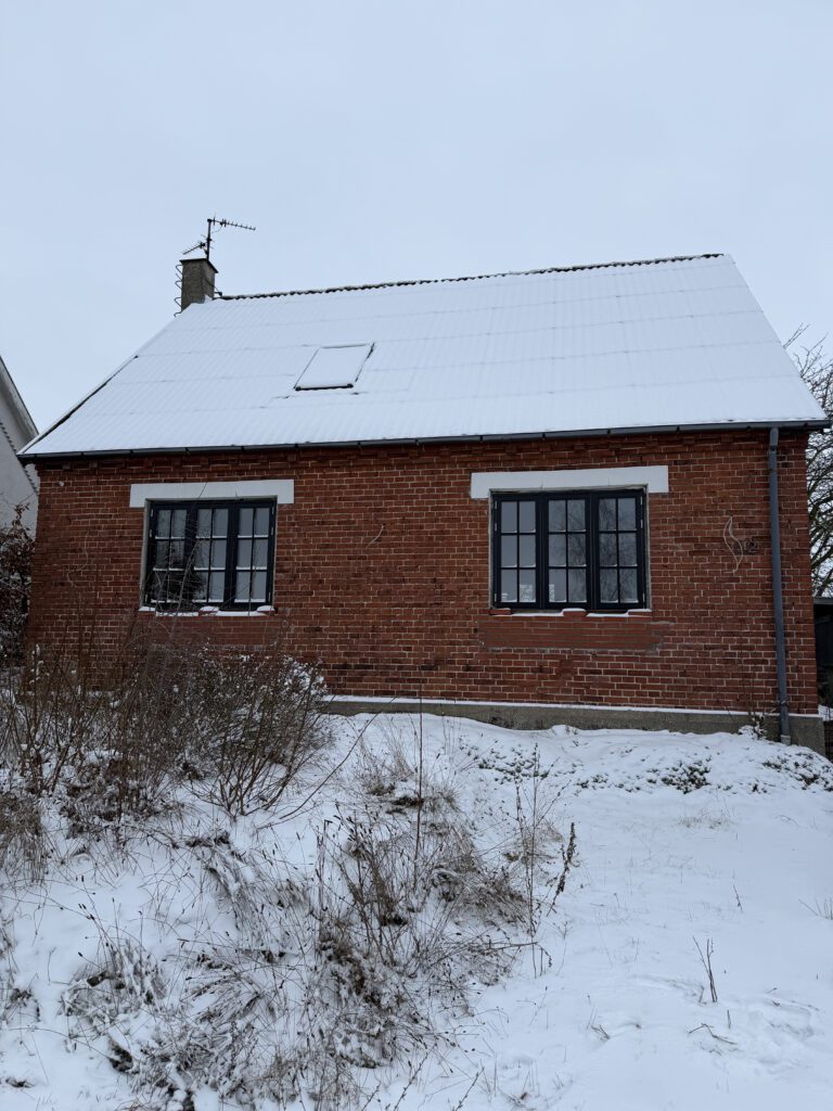 Huset fremstår fraflyttet ved besigtigelsen den 27. januar 2026, men der er efterladt en betydelig mængde indbo, herunder legetøj, senge, sofa, reoler, kommoder, madvarer, elkedel, mikroovn, airfryer, fritstående radiatorer, to udendørs grill (Weber og Charbroil), TV samt beklædningsgenstande.