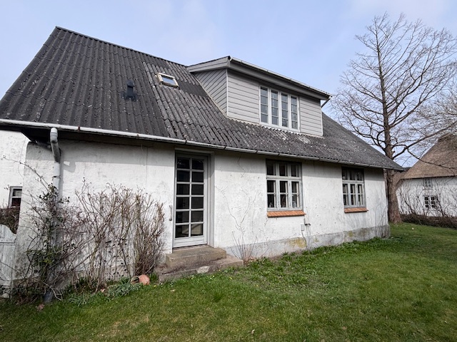 Køkken/spisestue/stue er i et, men adskilt af en halv-mur mellem køkkenet/spisestue og stue. Fra køkken/stue kommer man ud i en lille gang med klinker og vaskemaskine. Her fra er der til venstre adgang ud til en lille gårdhave. Lige ud i den lille gang, kommer man ud til et lille rum hvor der er badekar og håndvask. Til højre i den lille gang kommer man ind i husets eneste værelse.