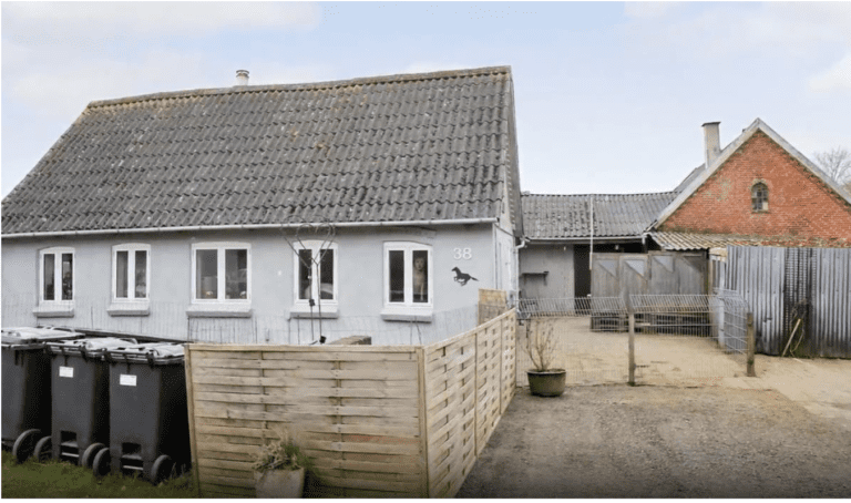Flere rum i stuehuset fremstår uden funktionelle overflader, gulve er ophuggede eller fjernet, og vægge står i rå form med puds i opløsning eller helt fjernet. Loftskonstruktionen fremstår flere steder med synlige bjælker og nedbrydning. Der ses også tidligere badeværelse med væltet sanitet og nedfaldne installationer. Generelt fremstår bygningen uden køkken, uden badeværelsesfunktion og uden nogen form for brugbar indretning. Ejendommen vurderes derfor som værende tømt for inventar og efterladt i rå og ufærdig stand, uden synlige installationer, der fremstår funktionsdygtige.